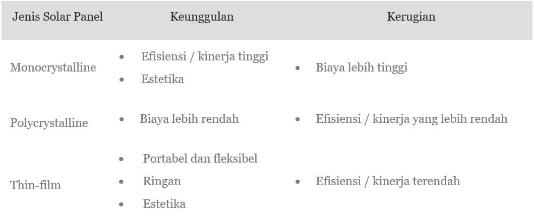 Jenis-jenis Panel Surya