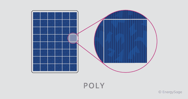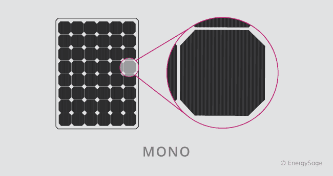 Sementara kedua jenis panel surya ini memiliki sel yang terbuat dari silikon, panel monokristalin dan polikristalin bervariasi dalam komposisi silikon itu sendiri. Sel surya monokristalin dipotong dari satu kristal silikon murni. Sebagai alternatif, sel surya polikristalin terdiri dari fragmen kristal silikon yang dilebur bersama dalam cetakan sebelum dipotong menjadi wafer.